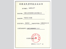 • 安徽省民營科技企業證書