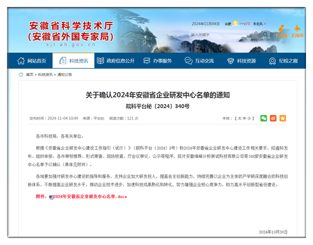 11月4日,安徽省科技...